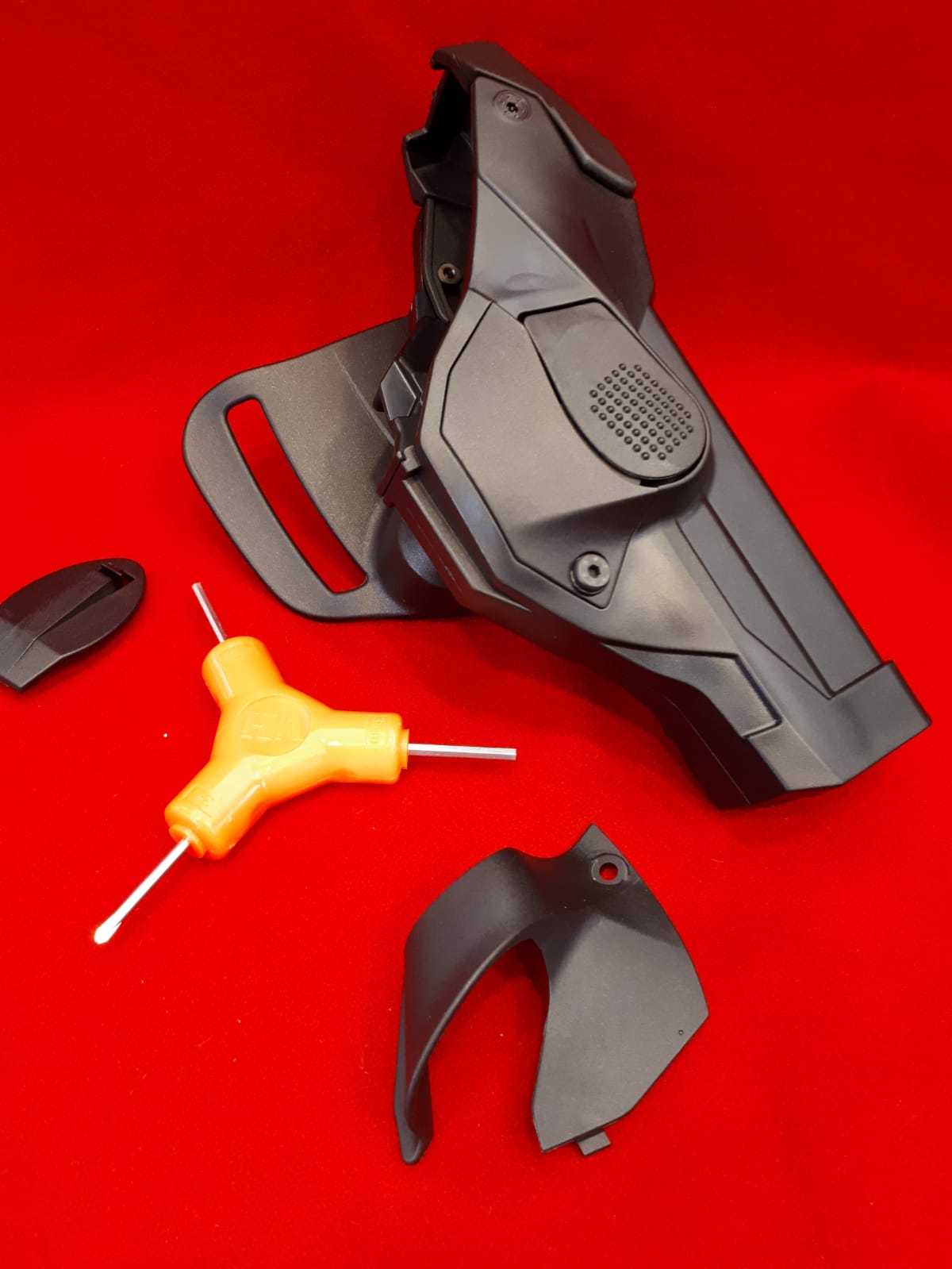 - Vite di ritenzione per la regolazione della frizione della fondina sull’arma. Sistema cosciale in polimero con piattaforma modulare.